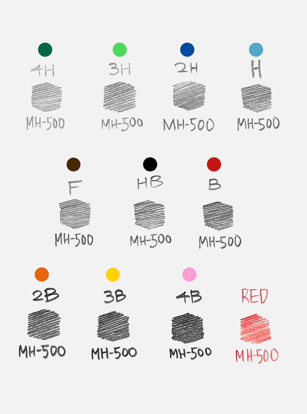 경도/색상 | 4H, 3H, 2H, H, F, HB, B, 2B, 3B, 4B, RED |