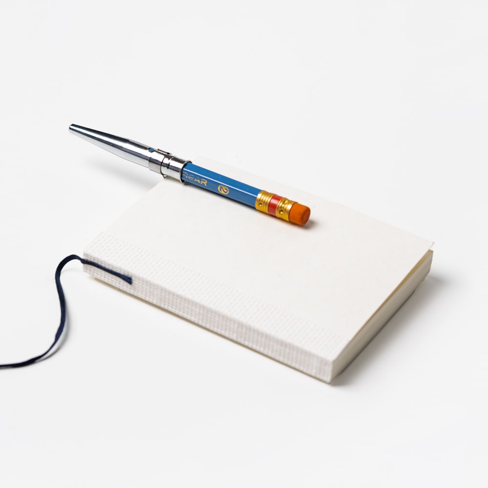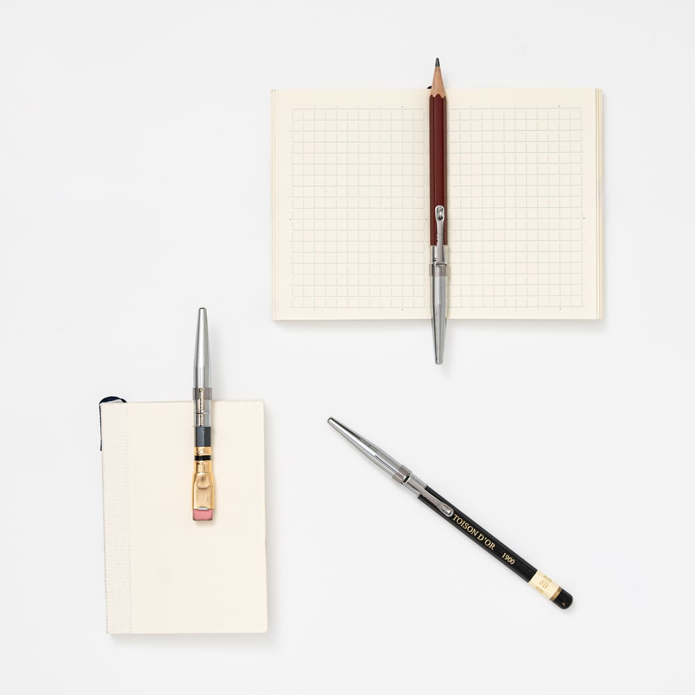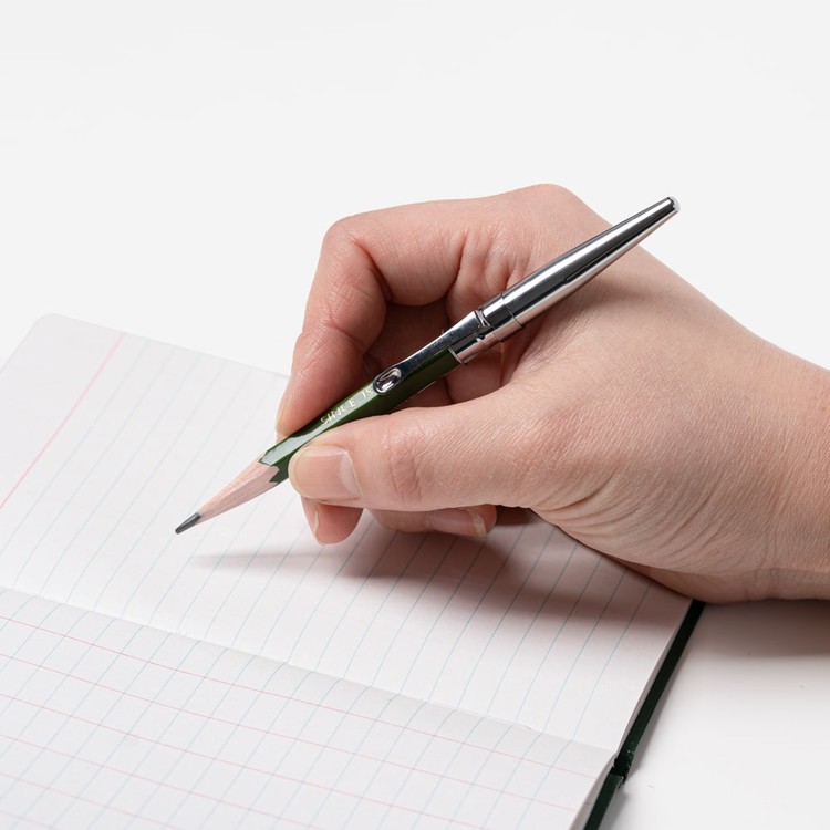 연필 캡을 짧아진 몽당 연필 뒤에 끼워