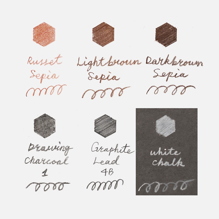 : 짙은 갈색 세피아로, 강한 명암이나 윤곽선을 잡을 때 효과적입니다.