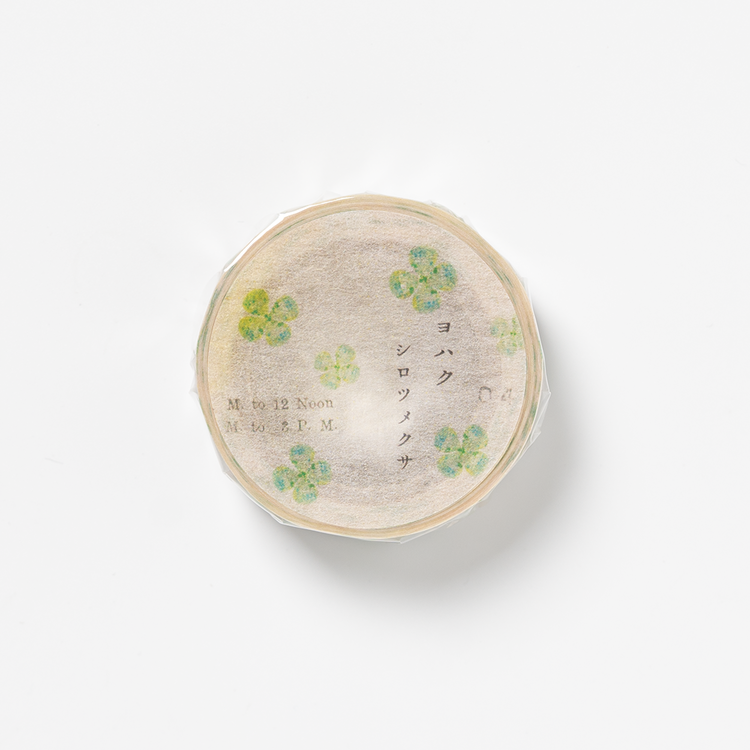 어린 시절 네잎클로버를 발견하고 녹색 냄새를 즐기던 추억을 그리워하며 디자인한 마스킹 테이프예요. 잉크 한 방울 떨어트린 것과 같은 배경이 아날로그 느낌을 더욱 살려줍니다. |